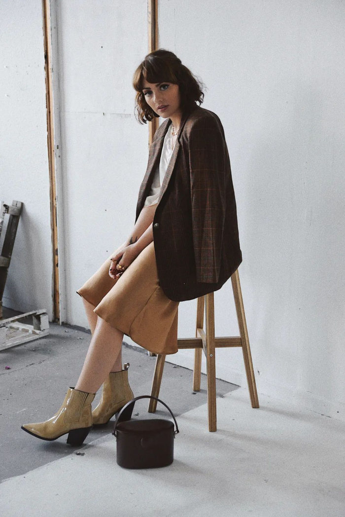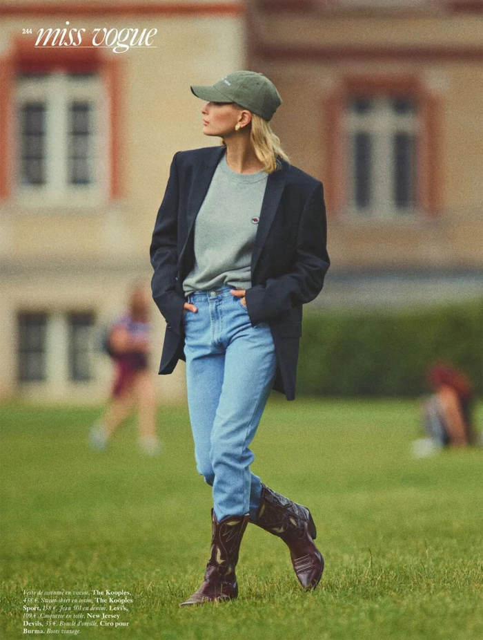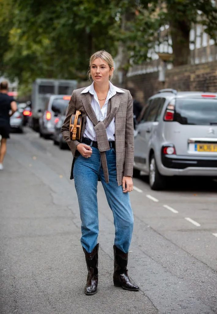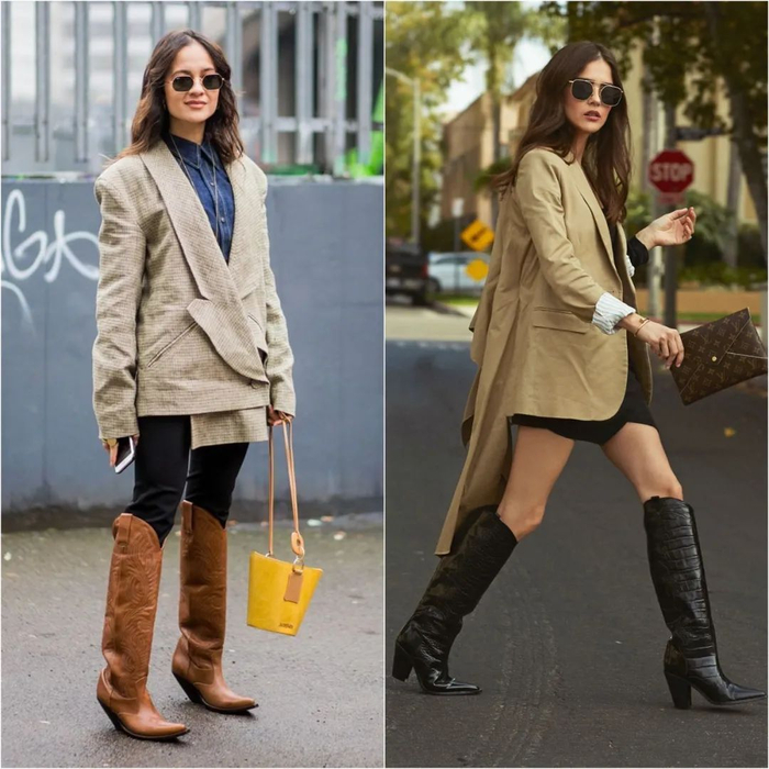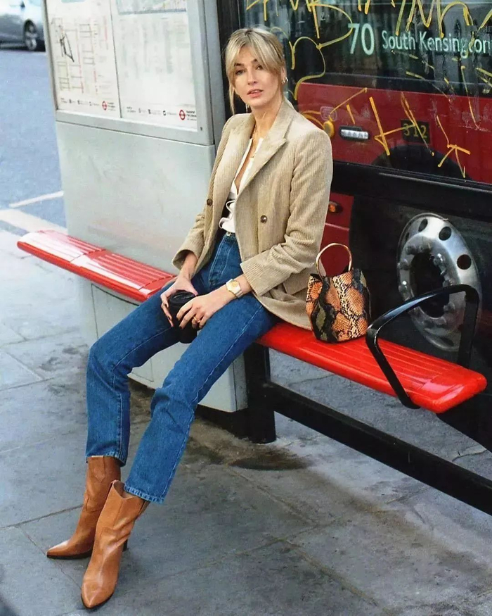 西部靴最经典的CP就是搭配稍微宽松一点的牛仔裤,再搭配oversize西装,重回八九十年代。▼