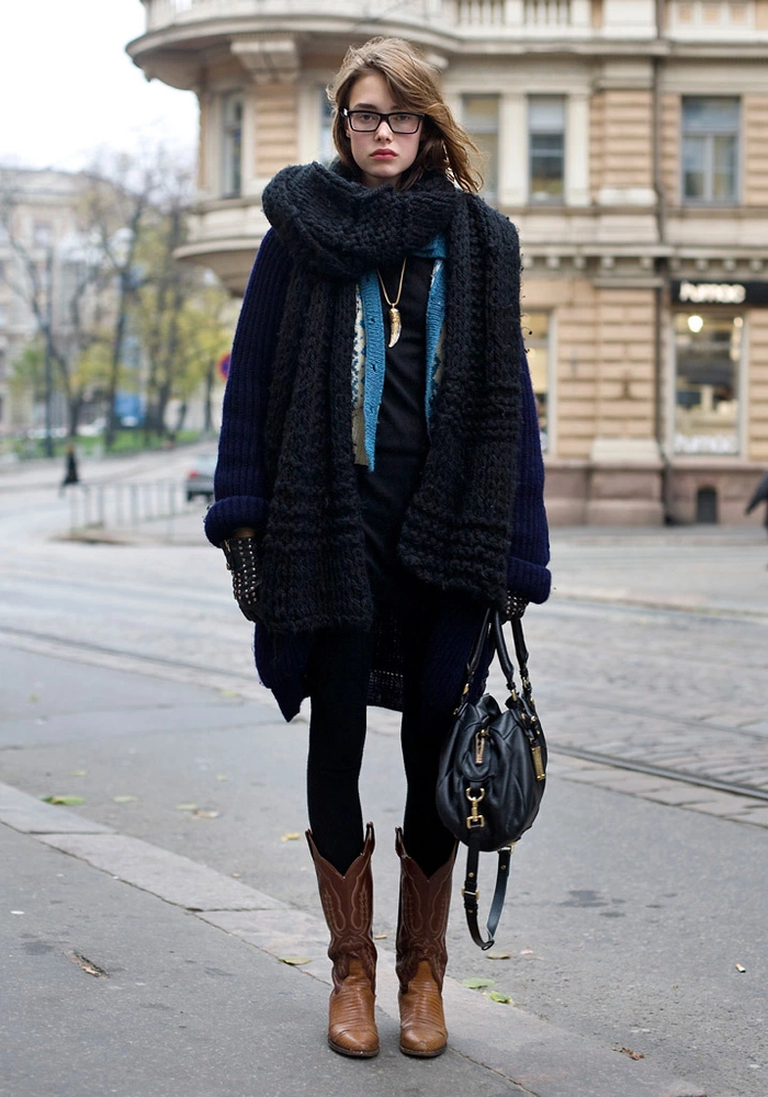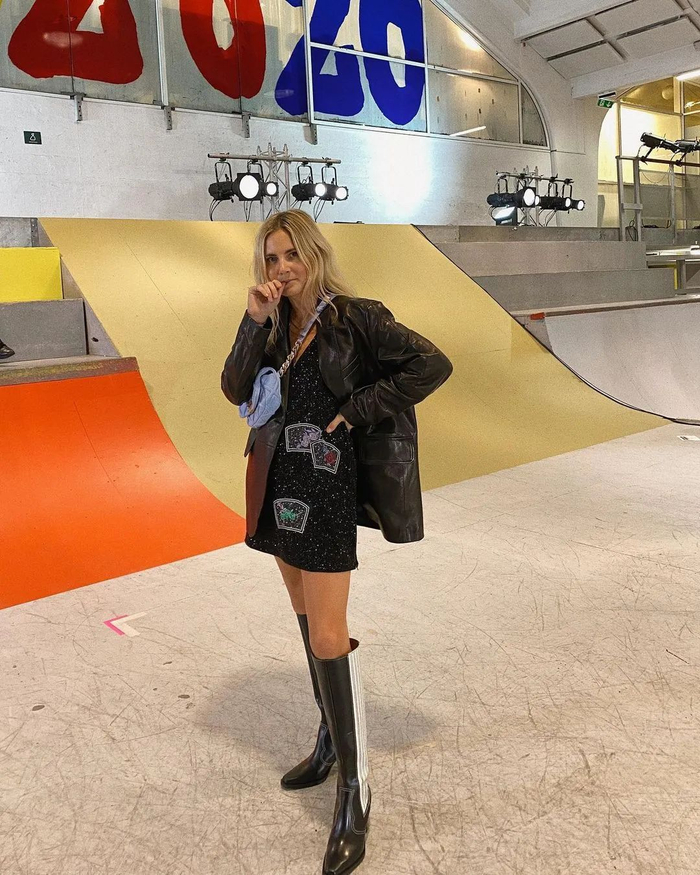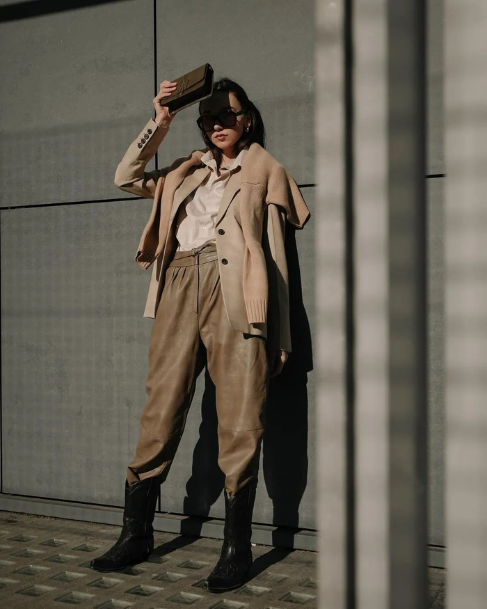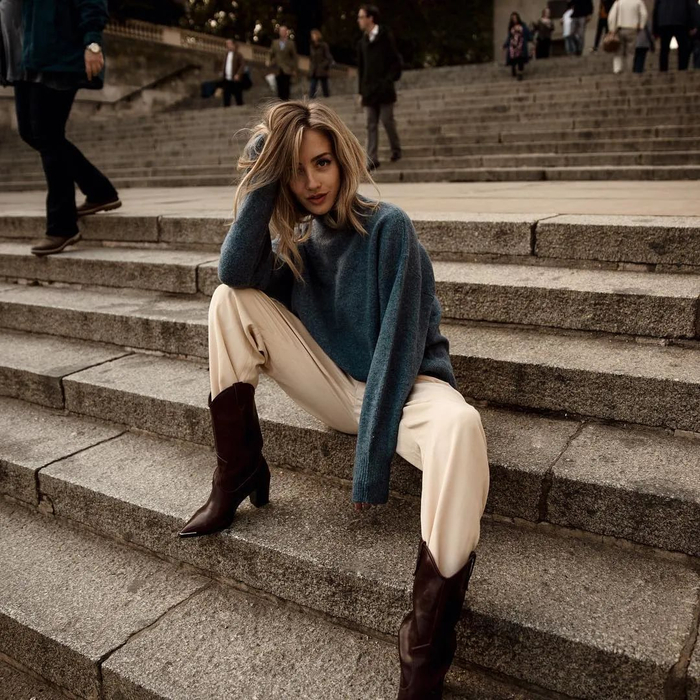 一般来说,穿了西部靴,其他单品就可以尽量简约了,因为它已经够亮眼。内搭可以选紧身裤、同色系等来突出它的风格。▼
