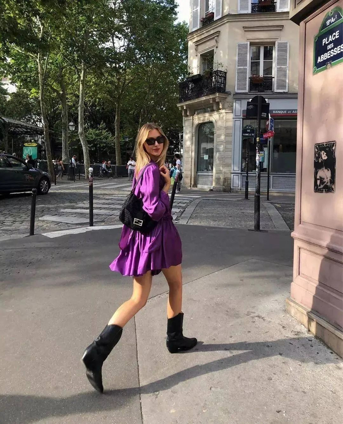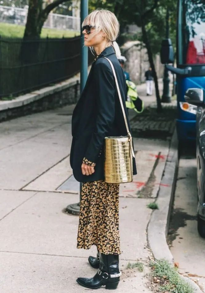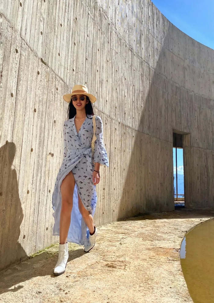 帅气的西部靴和裙子也很大,一柔一刚,让花裙子穿出了浪漫不羁的感觉。看蛮多明星博主夏天也爱穿,相比别的靴子,它的靴筒会更大,也相对没那么热。▼