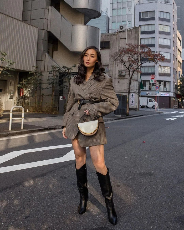 这个靴筒高度,搭配短裤短裙也比较友好,这个穿法很适合小个子。▼