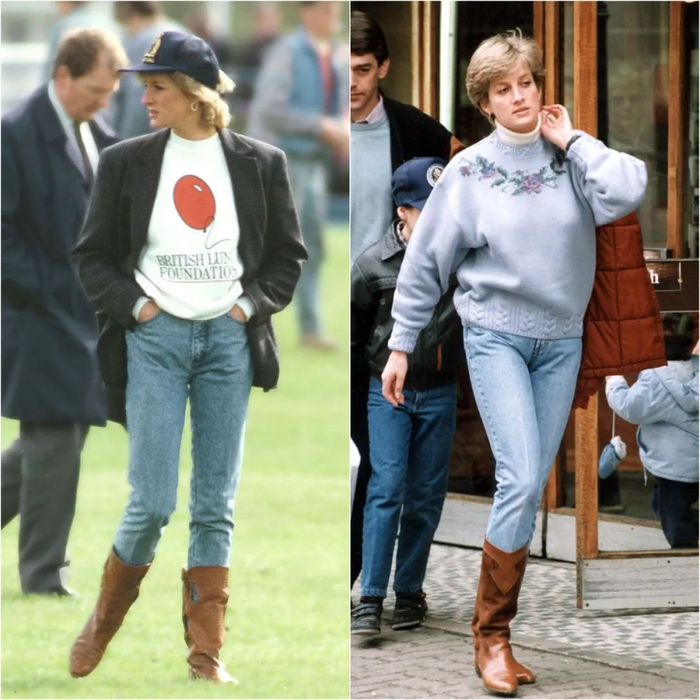 西部靴也是八九十年代的复古风单品。它当年能火起来,离不开戴妃的宠爱。
