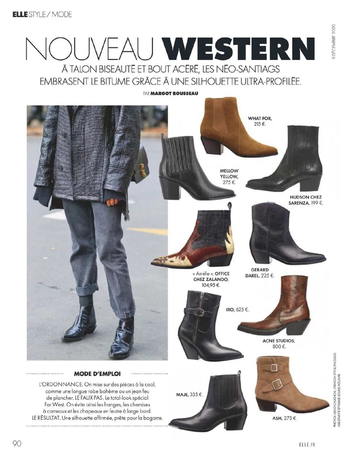 改良版的西部靴大多融合了一到两个西部元素,帅气感还在,驾驭难度却大大降低。我自己想买的就是改良后的款式。《ELLE》杂志▼
