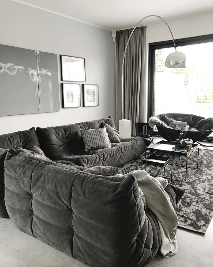 不过发现了吗,当主色调是冷调时,基本都会和一张毛绒绒的地毯配套出现,软的材质能适当削弱一点它的凌厉。▼