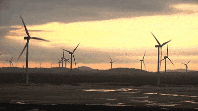 长江澳有福建最大规模的风力发电田,遥遥望去,白色的风车在海岸上随风旋转,美得像童话中的场景。