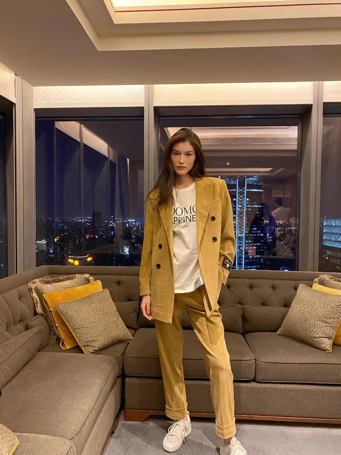 西装套装还是很火,你们买了吗?按照常规的思路,这个组合和高跟鞋最配,又美又飒,但就是没那么日常了。西装套装想日常穿出街,换双运动鞋就好。▼