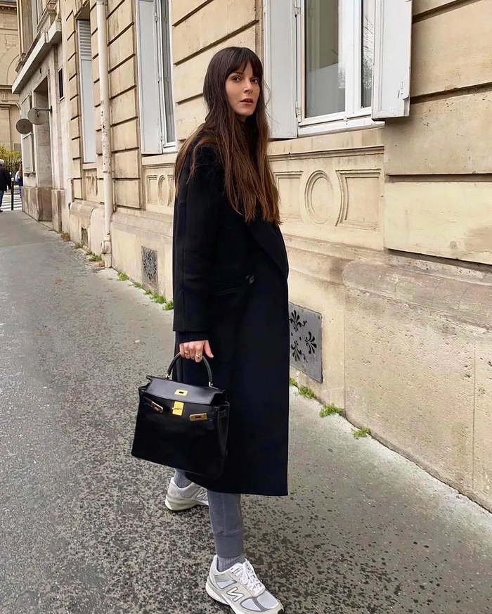 走复古大女人风的小伙伴可以试试搭长大衣+西装裤+运动鞋,大步流星走起来,超帅!金小妹、海狸、Kaia这些街拍明星都喜欢这样搭▼