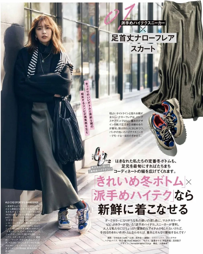 面料厚重的长裙最好不要搭厚重的运动鞋了,很笨重。有些裙子的风格和运动鞋也不太契合。▼