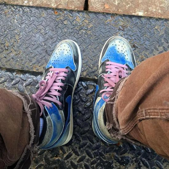 于是‘代工做旧氧化球鞋’在近期慢慢的兴起,这似乎成为了一项热门的生意。海外定制师 @Philllllthy 的‘氧化球鞋’作品更是极受追捧,也正因这种新风格的出现,让新的一批人接触到了定制球鞋。