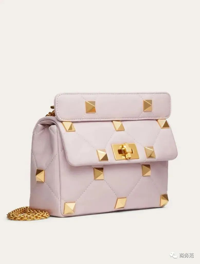 这一季全新推出的Roman Stud大钉包,把Valentino标志性的铆钉元素放大,黄铜合金材质质感爆棚,散发着柔和华丽的光芒。绗缝皮面也变得更简洁,牢牢抓住你的目光~