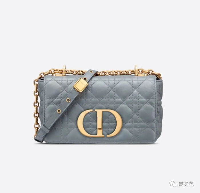 这只新款Dior Caro采用灰色牛皮材质,手感十分柔软。标志性的藤格纹绗缝皮面上,点缀着醒目的CD字母,灵感来自迪奥香水瓶,整体既优雅又年轻。