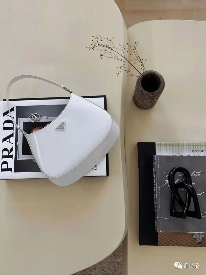 Prada现在最火的包包当然要数Cleo,范主之前入手了白色,漆皮自带镜面光泽,极简设计+圆润曲线,实在太好搭了。