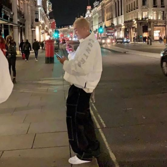 在巴黎看秀的造型,是第一次看到他这顶染色寸头发型,之后更是有不少玩潮男孩跟上了这个趋势。