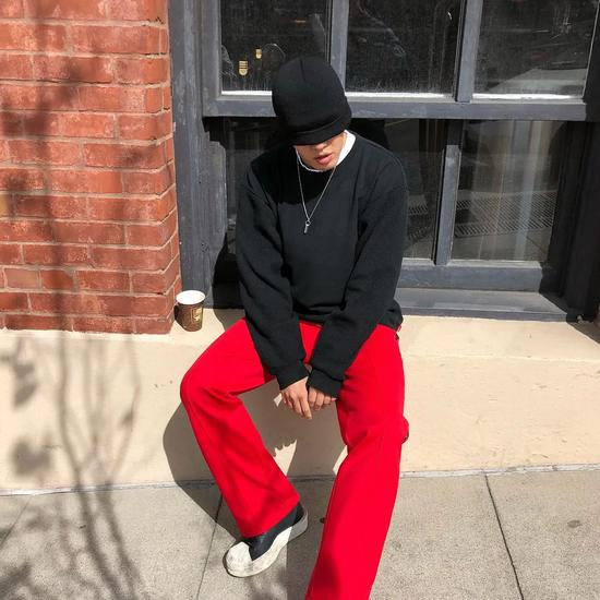 穿衣品味最高的境界就是将每一套私服都穿得跟不经意间搭配出来的一样,PALACE Hoodie 搭配 Y-3 收脚裤,刘亚仁讲究的就是自然舒适。