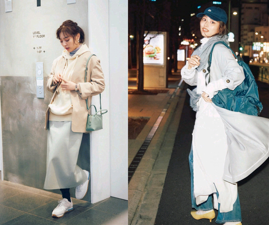 要记得!卫衣搭配半身裙,裙子应尽量避免蓬松感,否则很容易看起来会显胖的。