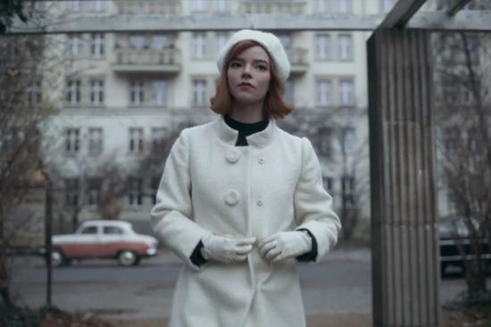 《女王的棋局》主角 Beth Harmon 在剧集结局穿着全白服装,向西洋象棋中的皇后致敬,也令白色羊毛大衣点击次数上涨 131%