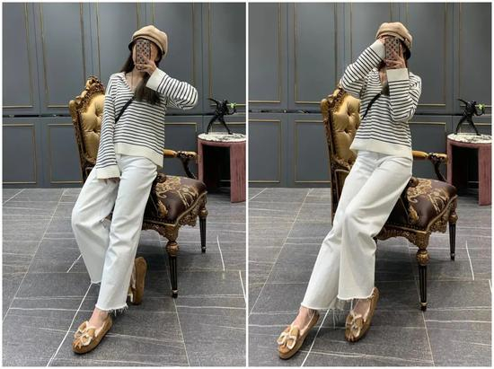 因为身材比较瘦,所以穿常规直筒裤有点撑不起来,倒是有种穿阔腿裤的既视感。