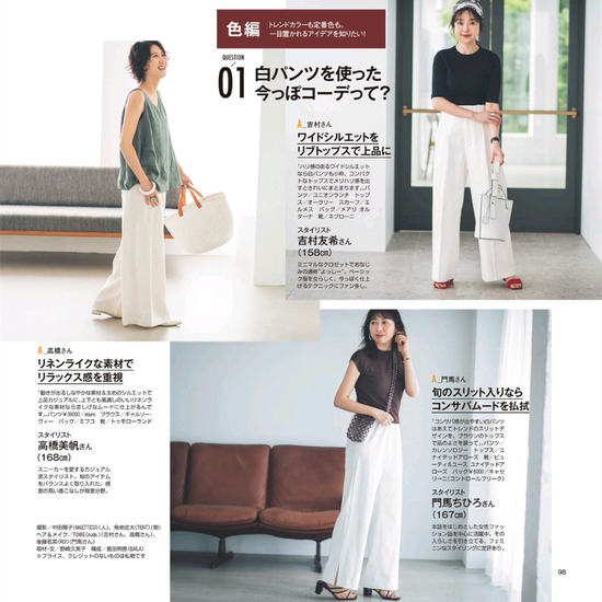 白色裤子能给人一种轻快的感觉,而且只要版型和搭配没有差错,显高级的同时也能拥有大长腿哦!