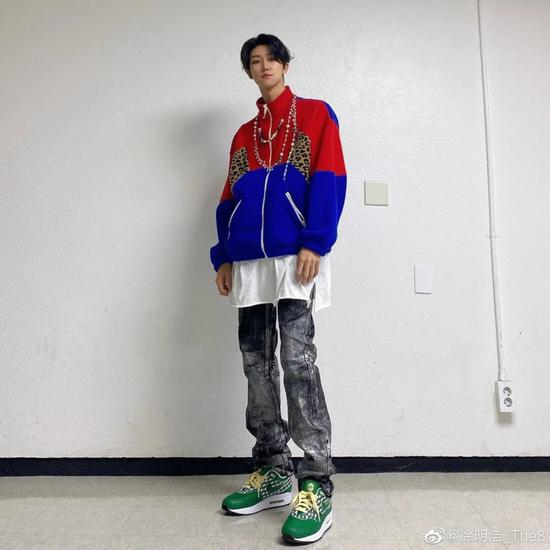 想要穿成“时髦又复古的美少年”?徐明浩的这身造型就值得借鉴。红蓝配色的运动夹克,款式经典,用色大胆。在不规则珍珠项链的加持下,整个造型的时髦度和质感都有了很大的提升。