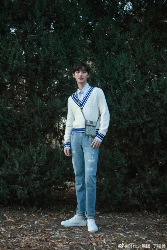 除了“贵族少年”这个tag,“邻家少年”也是他留给粉丝的印象。比如这身学院风的Look,就特别突显安静乖巧的气质。用宽V领毛衣,搭配淡蓝色条纹衬衫和磨洞牛仔裤,整个造型看起来简约不失新意,时髦又不会显得过于刻意。