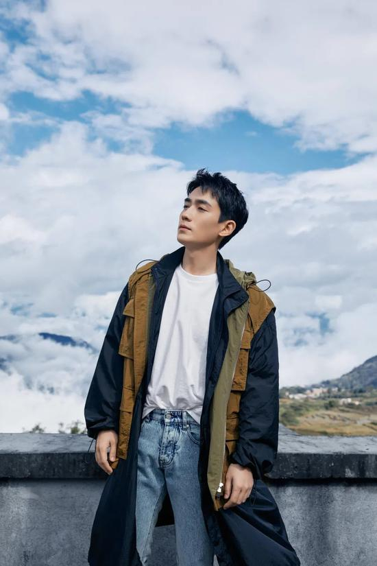 朱一龙则是选择水洗牛仔裤+白色T恤的组合,营造出了一种干净清爽的氛围。同时叠穿了大地色马甲和黑色长款尼龙落肩外套,瞬间时髦感升级。整体造型看起来舒适又养眼,是记忆中“隔壁班男神”的样子。