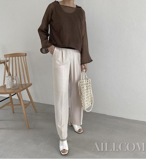 在单品的选择上,不管是深色还是浅色,Hara都非常注重细节,印花、褶皱或者腰带都是精心挑选和搭配的,简简单单的一身,却非常耐看,细节经得起推敲。高腰裤、长及脚面的阔腿裤都是增高神器,在材质的选择上,阔腿裤要尽量增加垂坠感,才能让腿长更优秀。