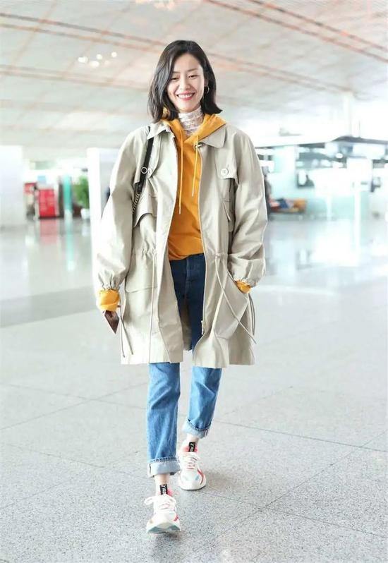风衣+卫衣+牛仔裤是经典与经典的“对决”,强强联手怎么搭都不会出错,你可以选择像刘雯一样搭配卷边牛仔裤,泛白的裤腿设计多了几分轻盈与活泼。