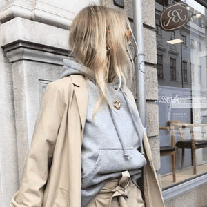 第二,两者混搭会产生强烈的视觉冲击,风衣的干练、卫衣的休闲完美融合,诠释出独特的高级和休闲感,深得时髦精们喜爱。