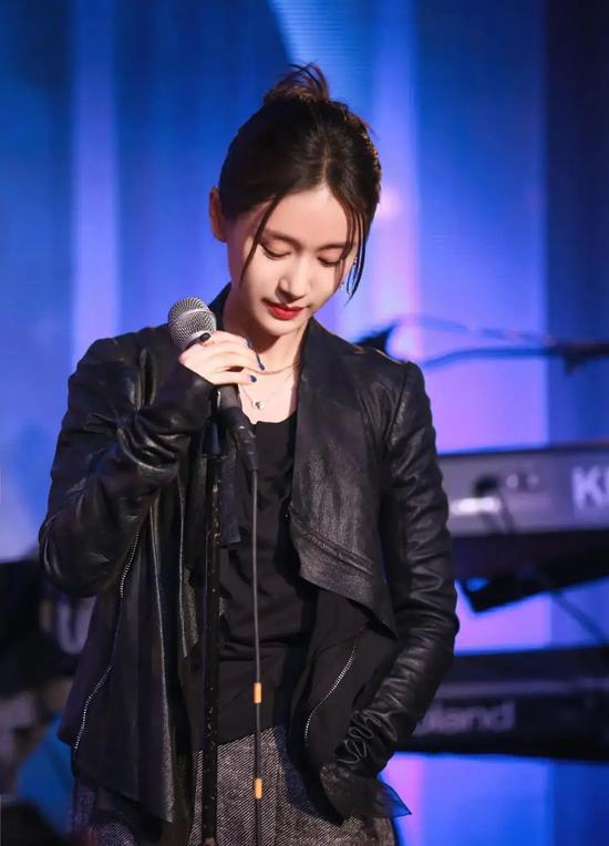 王子文在《怦然再心动》中,就是黑皮衣+黑内搭,用项链的叠搭的方式来加分,有没有感觉女人味很浓呢。