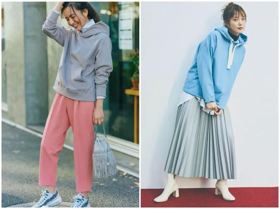 卫衣也可以当做中间层单品,而它的搭配也同样十分简单。