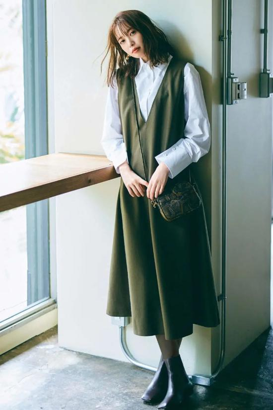 打底层除了可穿高领打底衫,其实衬衫也是很不错的选择~而且如果怕冷的话,在衬衫里面再加一件薄秋衣也是可以的。