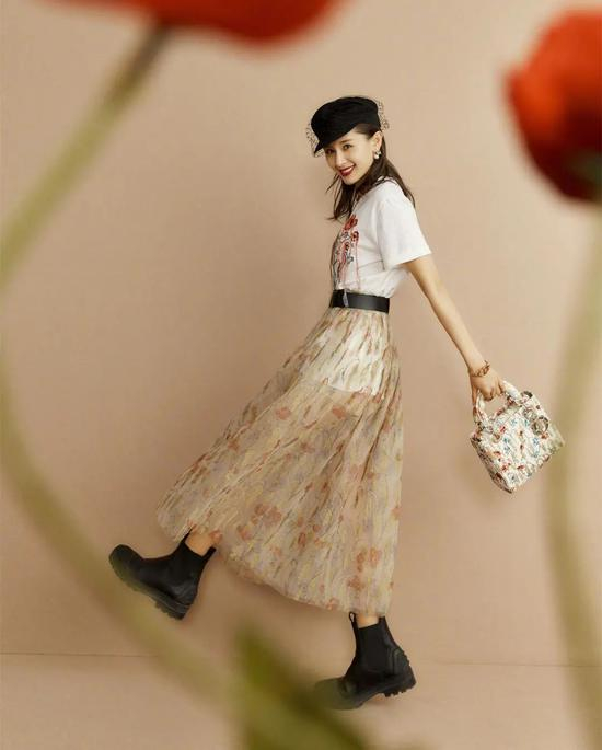 就长裙而言,裙摆到靴筒或是能露出小腿都是可以的。这个长度刚刚好,既不显拖沓又不压个子,会衬得整个人看起来身形很修长。