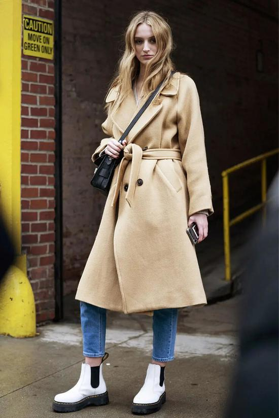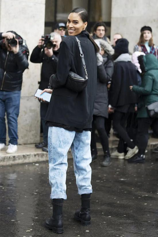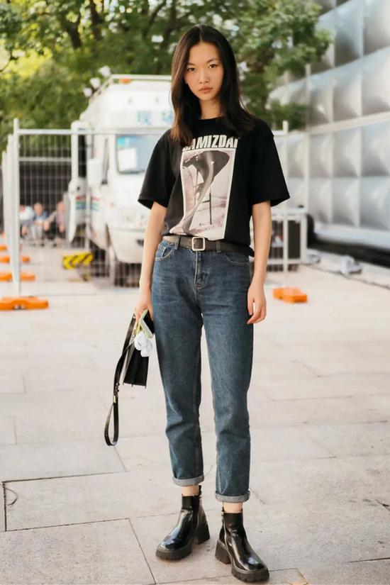 牛仔裤+烟筒靴,在休闲潮流中又带有几分酷帅的感觉。