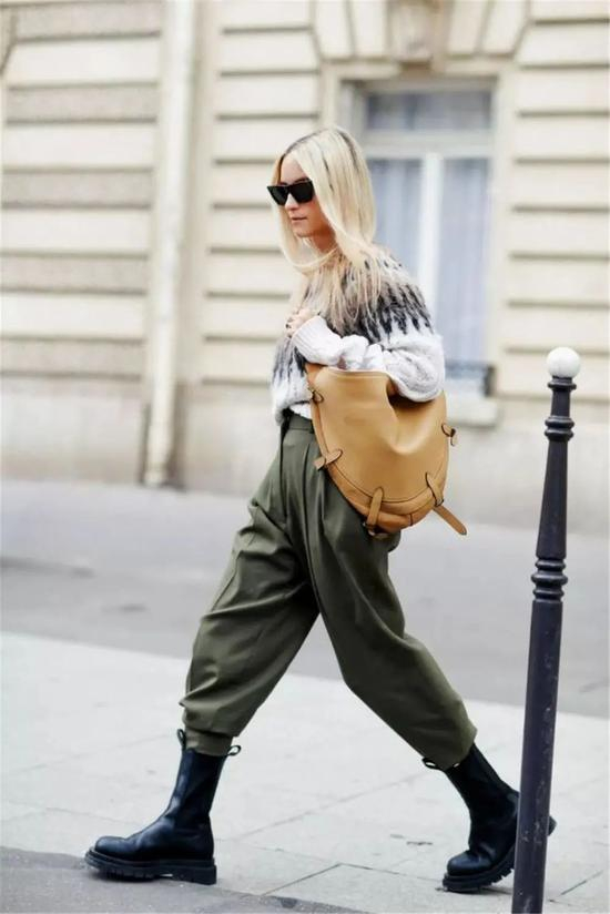 唯有裤身稍短一些,这样能亮出靴筒甚至是露出部分小腿肌肤,能够在视觉上拉长腿线。