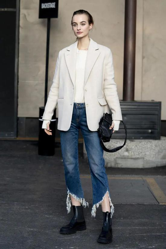 不用质疑牛仔裤的百搭性,很认真的讲,它跟哪款鞋子都能组成搭配。