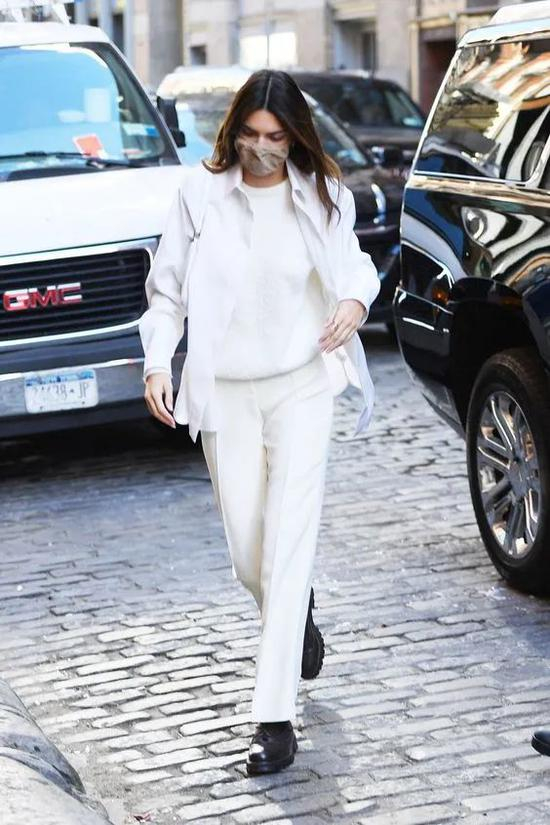 肯豆也有好几双德比鞋!虽然现在她出街基本都少不了口罩,但一双低调的德比鞋,配上纯白中性风套装,还是能让肯豆看起来有种干净又“轻飘飘”的tomboy风格~