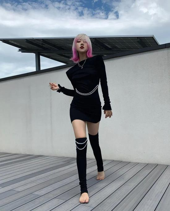 除了用来装饰小蛮腰,她还很喜欢用腰链来作为裤子和短裙的装饰,给舞台和日常的造型营造出画龙点睛的效果。