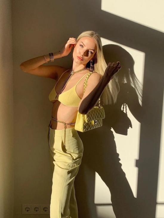 这种腰链的穿搭不需要那么完美的小蛮腰,只要在搭配上稍微下点功夫,普通人也可以很好的驾驭。