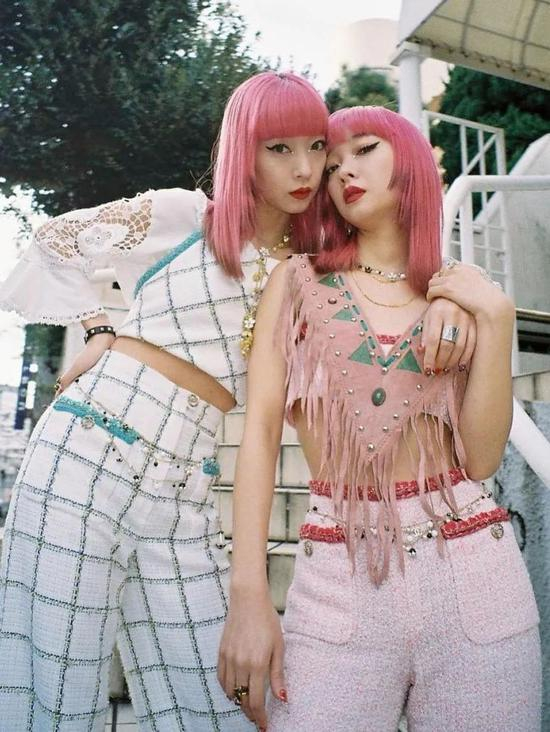还有这一套粉色夹克,搭配珠饰抹胸 Bra 和金色腰链,让视线更为集中于腰部曲线,惊艳迷人。