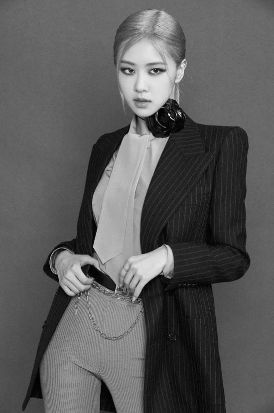 同样来自 BLACKPINK 的 Rose 在给 YSL 拍摄大片时,直接在腰带的下方加入金属腰链的搭配,让腰部瞬间成为全身的焦点,气质瞬间提升一个档次。