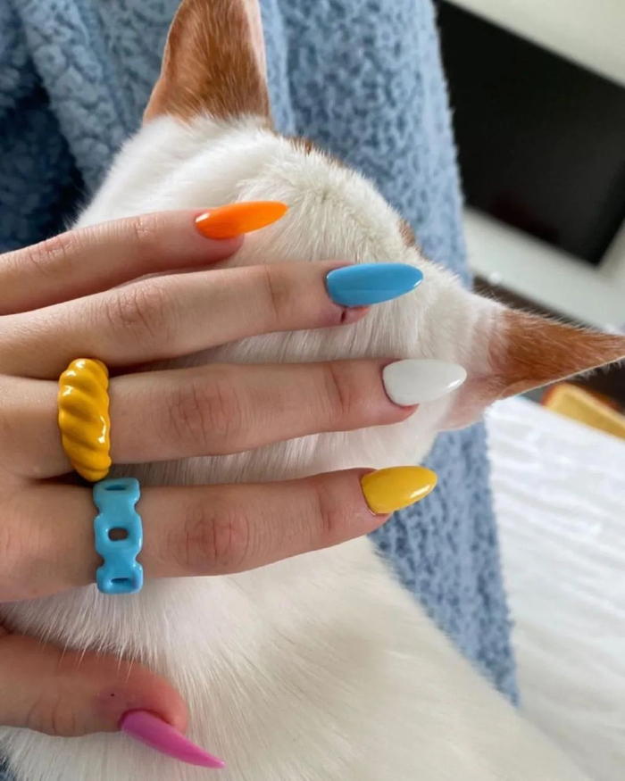 高饱和度的色彩和具有雕塑感的造型,仿佛是把现代艺术展上的展品最小化到了手指上,很当代,很艺术。