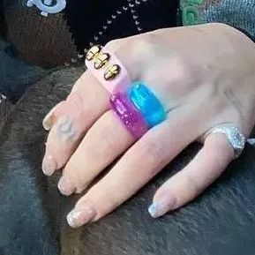 发照片秀戒指时顺便入镜五彩斑斓的精致指甲,如果你的指甲油刚好和戒指同色系那就是潮中潮。