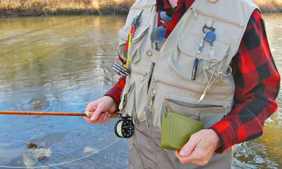 比如相比常规款式的马甲,版型上普遍偏宽和短,并且为了不影响肢体活动,更提供丰富的收纳等功能性用途,钓鱼马甲往往比较轻便。用于储存小件钓鱼装备立体口袋、挂轻便工具的 D 环锁扣、透气性更高的网织尼龙材质,以及可收纳昆虫拟饵的可拆卸毛绒贴布,一般是最具辨识度的一些元素。