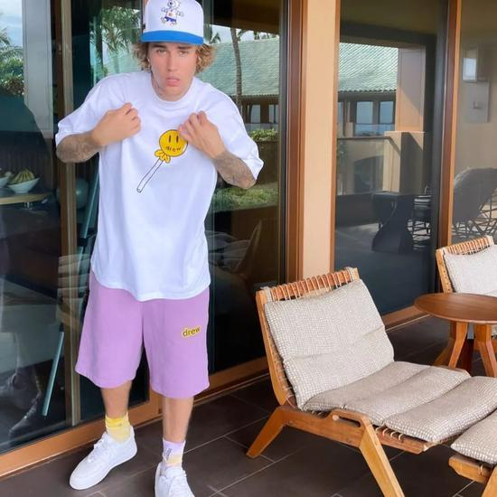 多少人去购买 Drew House 是因为其丰富绚丽的颜色,品牌极具辨识度的配色也反映了比伯本人的喜爱。可以见到他不遗余力地为自己的品牌疯狂带货,几乎每次出现在大家面前的造型都带点“色”。