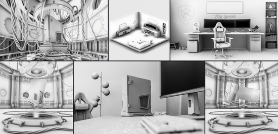 或是做电脑的图,也离不开这种炫酷风。看着我很想来一套带回家打游戏,但可惜这些作品都不是商业广告,都是他自己练手玩儿的。