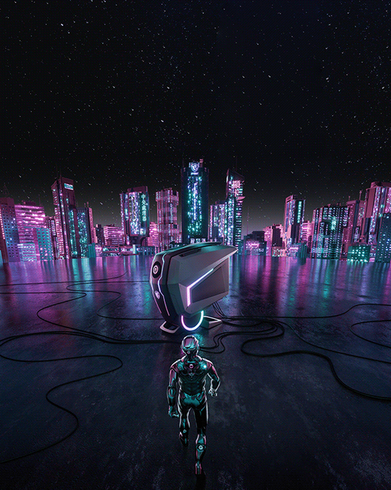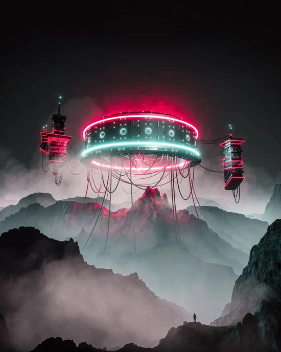 牛逼的色彩处理和建模,将未来的科技感和神秘感,诠释得淋漓尽致,有种穿越进了“赛博朋克”的世界的幻觉。