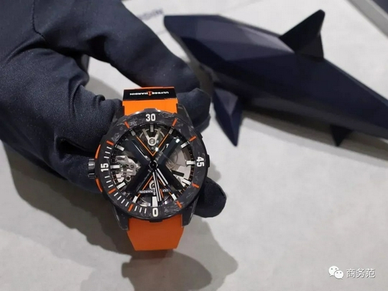 最近积家推出一枚北宸系列响闹潜水腕表,浓郁蓝色的漆面表盘,呈现出渐变效果,刻度和指针用橙色点缀,极具巧思。