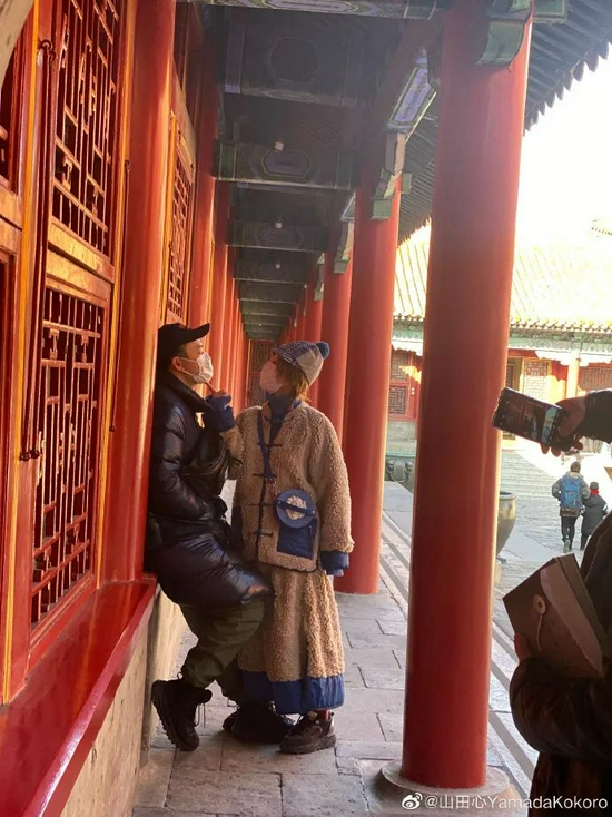 大王在景点里调戏小王,cos《喜剧之王》。