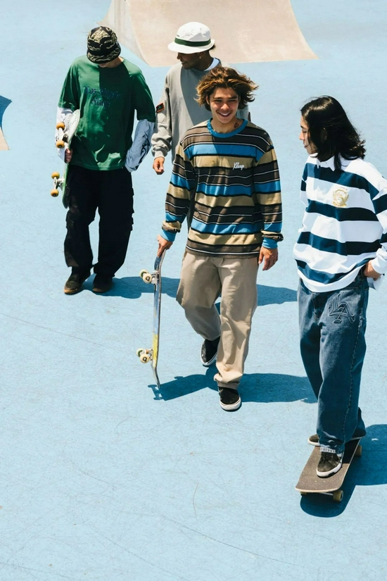 在 XLARGE 刚刚发布的 2021 秋冬系列里面,一件蓝白条纹长袖 Polo 衫也相当醒目。搭配宽松的牛仔裤和板鞋,演绎街头滑板少年风格。还不赶紧将长袖 Polo 衫加入秋季购物清单中!