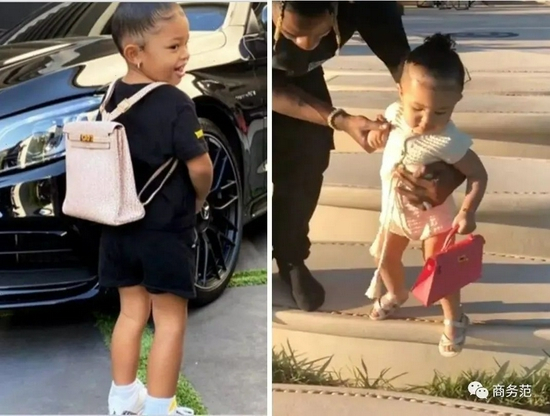 Stormi也是很小就有爱马仕了,不满1岁时就拥有了一只超难买的mini Kelly二代。被问到最想要什么圣诞礼物时,才22个月大的她竟然说出了“Birkin”。现在长大了一点,上学背的书包依然是爱马仕Kelly Aldo。