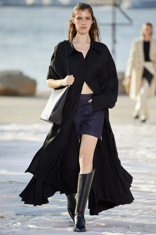相比于 Tom Ford 的明亮,Peter Do 2022的春夏系列就多了份柔和浪漫,素雅的颜色让春天的气息扑面而来。而它具有代表性的利落剪裁和有力的轮廓在衬衣外套的线条上都可以看得到,不对称的设计让简单的单品变得时髦。